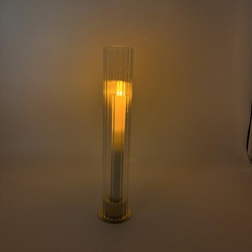 bougeoir doré, bougeoir haut, bougeoir en verre strié, bougeoir mariage, chandelier décoratif, centre de table élégant, décoration lumineuse événementielle, bougeoir chic, location bougeoir Alsace
