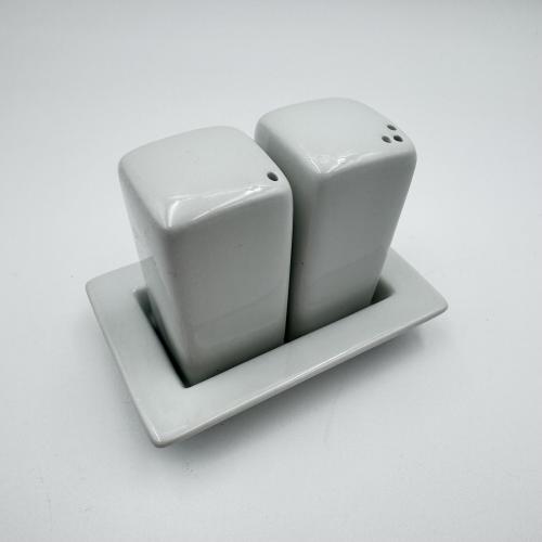 Location - Équipement de service / présentation - Ensemble salière et poivrière blanc sur support - REF 1423