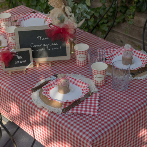 nappe vichy rouge location, location nappe guinguette Alsace, nappe carreaux rouge 240x150, nappe champêtre location, location textile événementiel, nappe bistrot rouge et blanc
