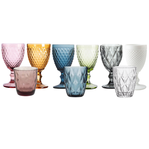 location verre diamond Alsace, verrerie colorée réception, location de verre coloré, verre relief diamant mariage, gobelet diamond location, verrerie design événement, location vaisselle Colmar.