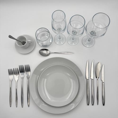 Découvrez à la location notre Formule Intemporelle 5 plats qui allie simplicité et élégance grâce à son assortiment d’assiettes Intemporelles rondes et ces couverts Intemporels.